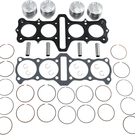 Caracteristicas: Complete engine kits include pistons, ring sets, pistons pins, retainer clips and head gasket All Wiseco pistons are forged from aerospace aluminum alloys on Wiseco's state-of-the art forging presses Built on a legacy of championships for over 60 years by American craftsmen Wiseco pistons have the latest dyno-tested technology to out-perform the competition
