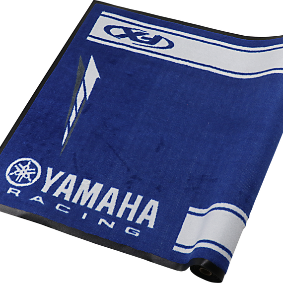 Caracteristicas: Complete your garage bike set-up this OEM bike mat Carpeted with rubber edging Anti-slip backing UV resistant graphics Stain and mildew resistant fibers for easy cleaning Measures 6 x 3 ft