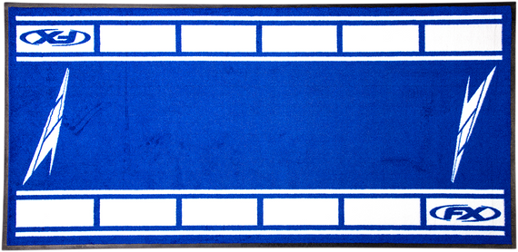 Caracteristicas: Complete your garage bike set-up this OEM bike mat Carpeted with rubber edging Anti-slip backing UV resistant graphics Stain and mildew resistant fibers for easy cleaning Measures 6 x 3 ft