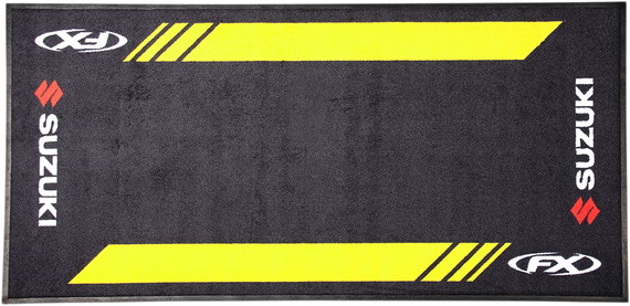 Caracteristicas: Complete your garage bike set-up this OEM bike mat Carpeted with rubber edging Anti-slip backing UV resistant graphics Stain and mildew resistant fibers for easy cleaning Measures 6 x 3 ft