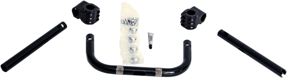 Caracteristicas: The ultimate in rider personal adjustment and fit Innovative "Klamps" allow the control/grip portions of the handlebar to be adjusted in several directions to allow the rider to find that perfect fit Include handlebars manufactured from DOM tubing, clamps machined from 6061 billet aluminum, chrome hardware, polished aluminum domed bar end plugs and black clutch cable Bars are drilled and slotted for internal wiring and work with heated grips Bar ends are slotted for throttle-by-wire option Fully knurled center section (riser clamp area) for use with stock riser clamp set-up Made in the U.S.A.