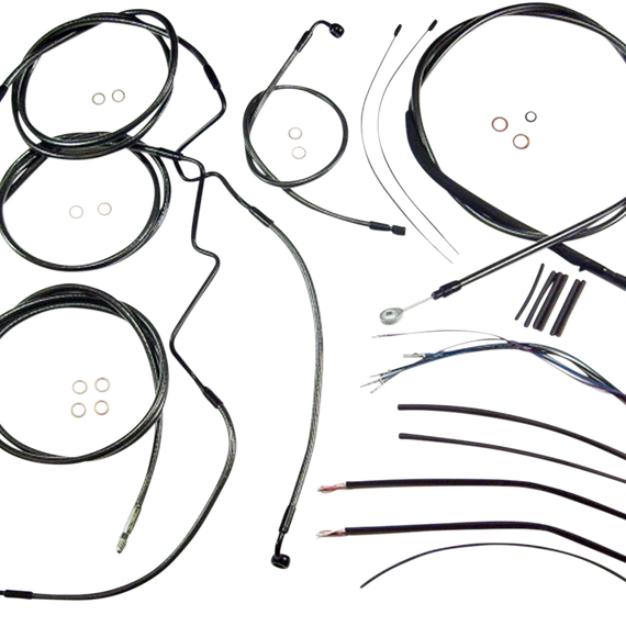• Kits include throttle and idle cables of throttle-by-wire extensions, clutch cable or hydraulic clutch line, brake lines, copper crush washers, hardware, and any necessary switch wiring of turn signal extension