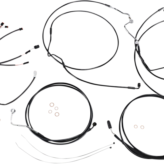 • Kits include throttle and idle cables or throttle-by-wire extensions, clutch cable or XR hydraulic clutch line, XR brake lines, copper crush washers, hardware, turn signal and switch wiring extensions