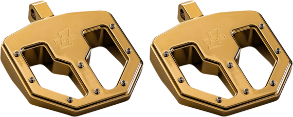 Caracteristicas: CNC Machined from 6061 Billet Aluminum Male Mount Configuration Clevis with 3/8" mounting Hole 360 Degree Adjustable Clevis with locking set screws Traditional BMX style Traction Pins that provide added grip and adjustability. (Pegs Supplied with M4-8mm Set Screws) BMX Mini Floorboard Measures – (3.75” Wide) X (3.75” Long) (length not including Clevis) NOTE: Kit does not include mounting hardware
