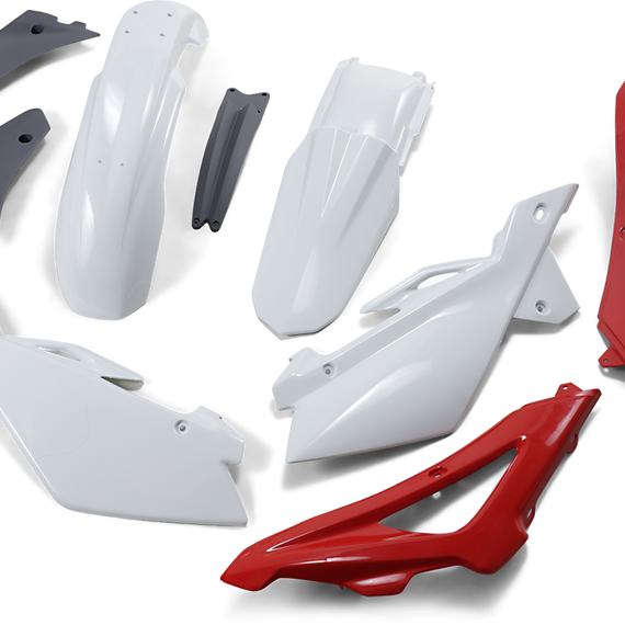 Caracteristicas: Pre-drilled pieces mount easily to stock Body kit includes front and rear fender, radiator covers and side panels; OEM matches stock bike colors Easy bolt-on installation Made in Italy