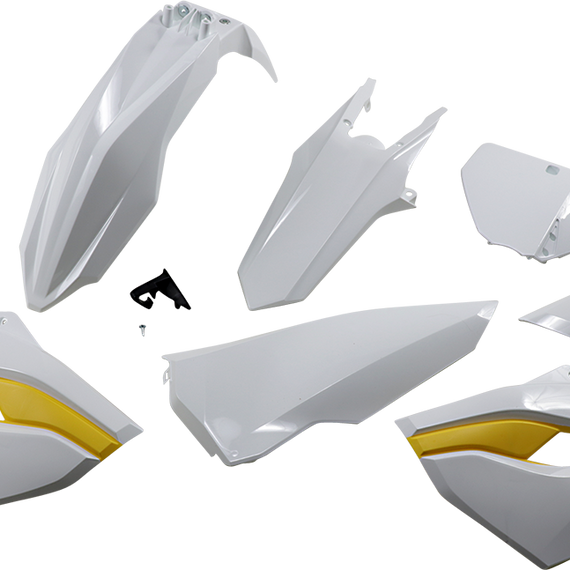 Caracteristicas: Pre-drilled pieces mount easily to stock Body kit includes front and rear fender, radiator covers and side panels; OEM matches stock bike colors Easy bolt-on installation Made in Italy