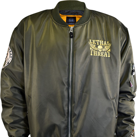 Caracteristicas: Water-repellent 100% nylon flight satin outer shell and polyester interlining Strong front zipper closure with storm flap Two inside and two outside pockets (snap closure) Knit collar, cuffs and waistband Utility/pencil pocket on the left sleeve Embroidery direct to the garment Comfort rated in temperatures from 25-40 degrees Fahrenheit (-4 to +5 C)