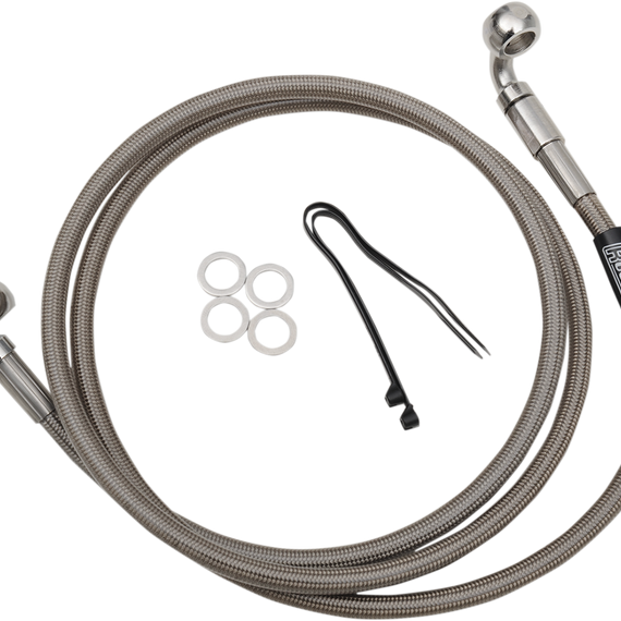 • Using all stock mounting locations and hardware, simply route the hose and attach the banjo at the master cylinder