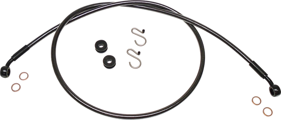 Caracteristicas: Housing length is measured from the center of the banjo hole at the master cylinder to the flat part of the 90° at the caliper E-Z Align rotating caliper banjo feature allows for perfect no-kink fitments Fittings offered are in 7/16" or 10 mm sizes, with 90°, 180°, 35°, and 60° degree bends. The caliper banjo will be a 90°or a 60° 10 mm E-Z Align rotating caliper banjo