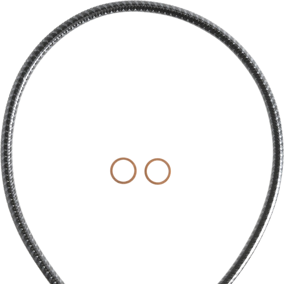 Caracteristicas: Wire braid is created from distinct black and gray tone wire colors blended and interwoven together to mimic the look of hi-tech carbon fiber Unique alternative black braid complements black or blackout color scheme motorcycles Manufactured with an enhanced construction designed to be compatible with Harley ABS requirements for stock and alternate length brake lines Banjo angle ensures a great fit -3AN connections make for easy installation Fittings are highly polished and black chrome-plated Crystal-clear outer jacket offers exceptional protection against scuffing paint or chrome and will never discolor Inner PTFE tubing braided with Aramid Fiber reinforcement provides the ultimate in high performance by greatly reducing line expansion Brake lines are constructed with PTFE inner tubing, DuPont™ Kevlar® aramid fiber, premium signature Magnum braids and an outer PVC jacket Compliant with all DOT FMVSS-106 specifications Assembled in the U.S.A. DuPont™ and Kevlar® are trademarks or registered trademarks of the E.I. du Pont de Nemours and Company Magnum Shielding brake lines are designed to follow the same routing path as OE Upper brake lines will require the use of adapters #1742-0658 for '18 - '21 models or #1742-0458 for '12 - '17 models (sold separately) to install Non-stock applications require taking a measurement for upper brake line length and banjo angle to ensure correct fitment Harley motorcycles equipped with anti-lock brake systems require ABS-specific upper and lower brake line kits; failure to do so may result in compromised anti-lock braking ability; Magnum Shielding upper brake line kits manufactured specifically for these applications are identified with the letters "ABS" printed directly on the brake hose