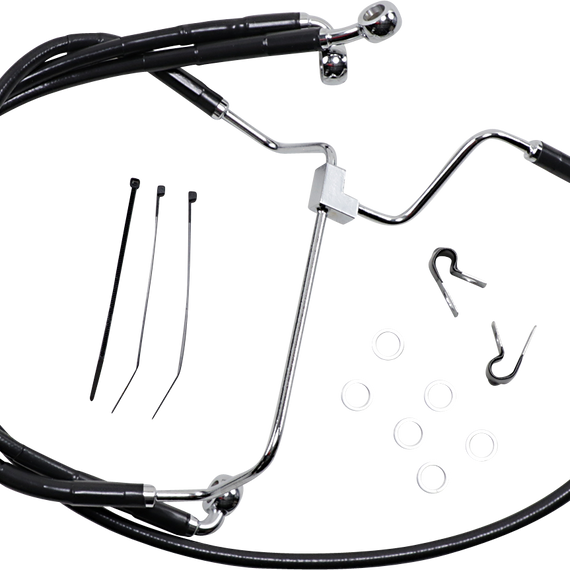 Caracteristicas: Features black vinyl-coated braided extended lines with chrome steel fittings Made in the U.S.A. All measurements are approximate