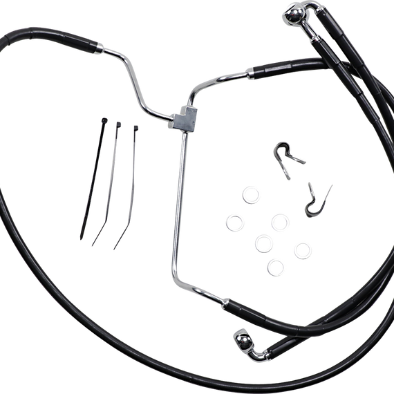 Caracteristicas: Features black vinyl-coated braided extended lines with chrome steel fittings Made in the U.S.A. All measurements are approximate