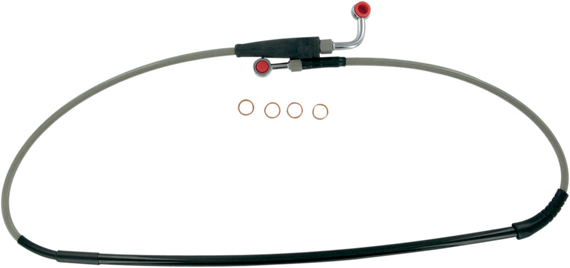 Caracteristicas: Swivel union ends are the secret to easier fitting, and ensure a kink- and stress-free installation Venhill Engineering in the UK makes Moose Racing Stainless Steel Brake and Clutch lines to the highest specifications Each line is made from top quality DuPont Teflon®-coated hose, wrapped with British-made stainless steel, and PVC-coated for protection and great looks Rubber protection boots and extra-rigid tubing are used to protect vulnerable areas from heat and impact and to prevent hose flex under compression Each line is designed to withstand a minimum of 14,000 psi Installing Moose Racing stainless lines gives a large performance increase by significantly reducing expansion under pressure and absorption of water when compared to stock rubber hoses