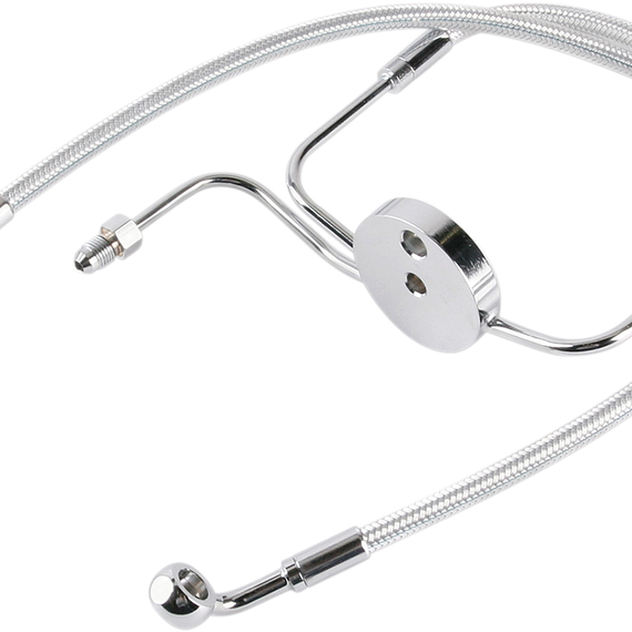 Caracteristicas: If replacing the stock lower brake line assembly on '18+ dual disc Softails, an adapter is NOT needed. Using AN-3 fittings, the upper line connects directly to the Magnum lower assembly Brake lines are constructed with PTFE inner tubing, DuPont™ Kevlar® aramid fiber, premium Signature Magnum braids and an outer PVC jacket to greatly reduce line expansion Manufactured with an enhanced construction designed to be compatible with Harley-Davidson ABS requirements for stock and alternate length brake lines Brake kits consist of a direct fit lower assembly used in conjunction with alternative length upper lines AN-3 connections make for easy installations Assembled in the U.S.A.