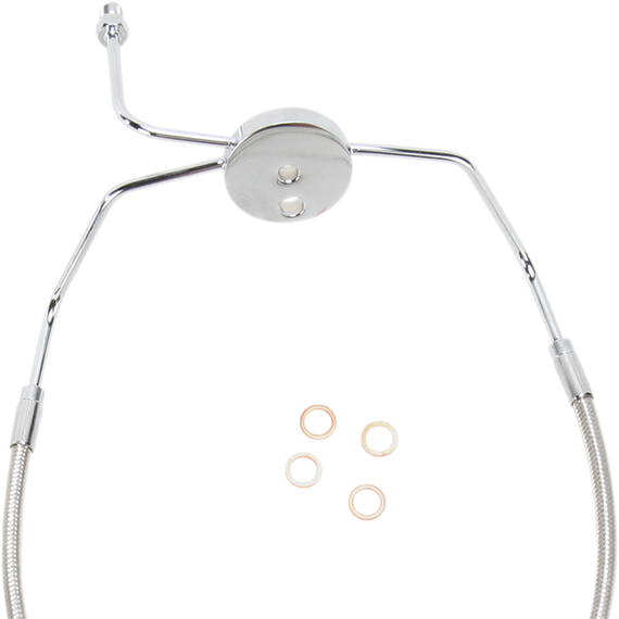 Caracteristicas: If replacing the stock lower brake line assembly on '18+ dual disc Softails, an adapter is NOT needed. Using AN-3 fittings, the upper line connects directly to the Magnum lower assembly Brake lines are constructed with PTFE inner tubing, DuPont™ Kevlar® aramid fiber, premium Signature Magnum braids and an outer PVC jacket to greatly reduce line expansion Manufactured with an enhanced construction designed to be compatible with Harley-Davidson ABS requirements for stock and alternate length brake lines Brake kits consist of a direct fit lower assembly used in conjunction with alternative length upper lines AN-3 connections make for easy installations Assembled in the U.S.A.