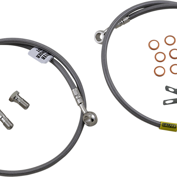Caracteristicas: Requires less pressure at the lever, allowing the rider to use less force while stopping the bike faster and with better feel Fittings come from the factory pre-positioned but can swivel 180° if necessary to make the installation process easier Include a clear outer coating which protects the bike from scratches and the lines from humidity Complete with all necessary banjo bolts and washers and ready to install