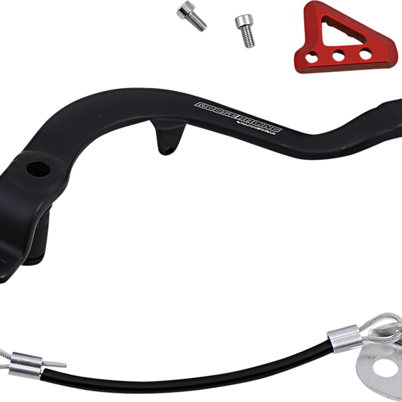 Caracteristicas: Moose Racing has teamed up with Hammerhead to bring you the ultimate brake pedal The brake pedal arms are forged from 6061 with stainless steel clevis pin sleeves and brass mounting bolt sleeve bushings Brake tip is finely machined CNC part with stainless steel set screws for durability and grip Brake tips can be adjusted for length in two mounting positions and are connected with stainless steel socket screws The brake pedal arm is anodized in a matte black finish and the tips are anodized in colors per bike brand Brake pedals include a CNC brake clevis, also anodized in colors per bike brand with a stainless steel pin (except KTM) Every brake pedal also comes with a stainless steel brake snake Anodized with UV protection to preserve color Made in the U.S.A.