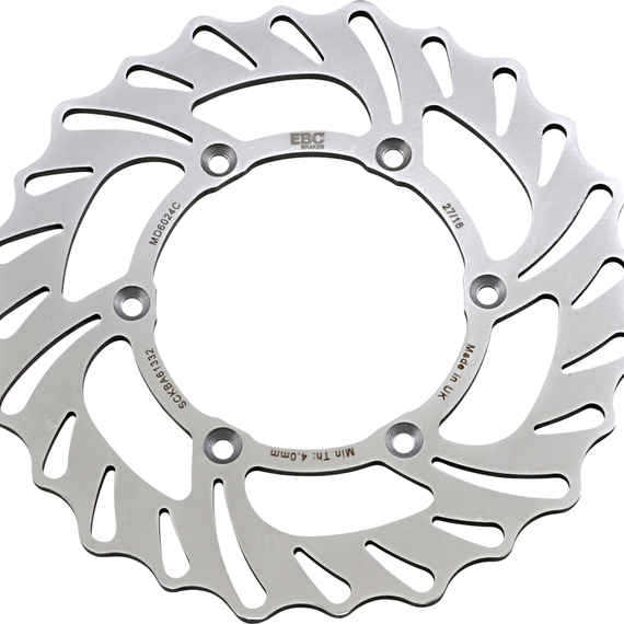 Caracteristicas: Super-trick looking contour brake rotor profile Heat-treated stainless steel Rotor design reduces unsprung weight Made from German mill-rolled heat-treated steel No vent holes in the pad sweep area to improve pad and disc wear for enduro use