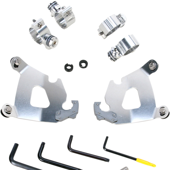 Caracteristicas: Angle Adjustable Model specific no-hassle installation, then on-off without tools. A pair of glass-filled nylon latches lock it down until the spring loaded "Trigger-Locks" are intentionally disengaged. Made exclusively of electrocoated aluminum and stainless steel, with stainless steel fasteners. Anchoring hardware is the same for all windshields and fairings for each bike. Made in the U.S.A. - Made in Memphis!