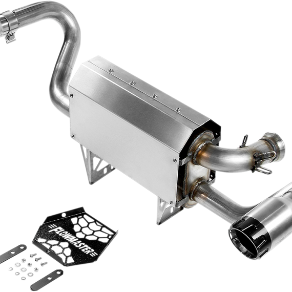 • 409S stainless steel construction with a 2.50-inch mandrel-bent inlet tube flowing into an XDR "straight-through" cross-flow competition muffler