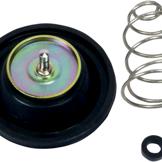 Caracteristicas: Located on the side of the carburetor, the air cut-off valve prevents lean fuel mixture (backfire) when decelerating Temporarily closes the pilot jet airway to provide a richer mix as the throttle closes Direct OEM-style replacement carburetor air cut-off valve set Include diaphragm, spring and O-ring