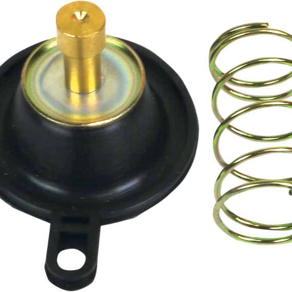 Caracteristicas: Located on the side of the carburetor, the air cut-off valve prevents lean fuel mixture (backfire) when decelerating Temporarily closes the pilot jet airway to provide a richer mix as the throttle closes Direct OEM-style replacement carburetor air cut-off valve set Include diaphragm, spring and O-ring