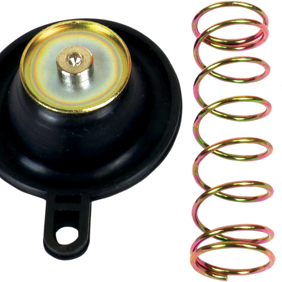 Caracteristicas: Located on the side of the carburetor, the air cut-off valve prevents lean fuel mixture (backfire) when decelerating Temporarily closes the pilot jet airway to provide a richer mix as the throttle closes Direct OEM-style replacement carburetor air cut-off valve set Include diaphragm, spring and O-ring