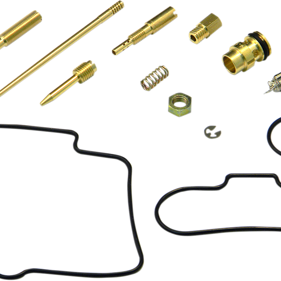 Caracteristicas: Includes main and pilot jets, jet needle sets, float valves, float chamber gaskets and O-rings (jets included in each kit are for common sizes; according to riding conditions and riding preference, different size jets may be used) Award-winning rubber-top float valves are made using highest quality rubber and a plated body for resistance to harsh gas, ethanol and methanol Each complete kit rebuilds OEM carburetors to achieve optimum performance Idle screw sets, pilot screw sets and air screw sets also included if applicable