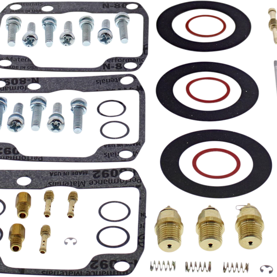 • Kit includes all necessary O-rings, gaskets, jets, needle, mixture screw, float bowl screws, float valve needle and seat (needle jet and other pressed-in jets are not included in kit)