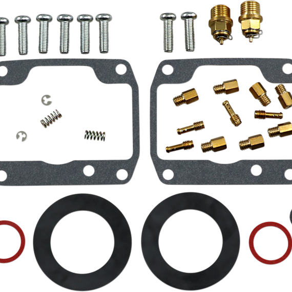 • Kit includes all necessary O-rings, gaskets, jets, needle, mixture screw, float bowl screws, float valve needle and seat (needle jet and other pressed-in jets are not included in kit)