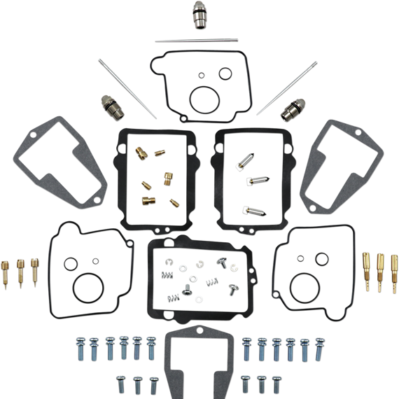 Caracteristicas: Kit includes all necessary O-rings, gaskets, jets, needle, mixture screw, float bowl screws, float valve needle and seat (needle jet and other pressed-in jets are not included in kit) NBR rubber material is used on all O-rings and rubber gaskets; NBR has excellent resistance to the ethanol used in today's fuels Applications that use paper float bowl gaskets are upgraded to High Performance Interference Gasket material Models with multiple carburetors include components to repair all carburetors OEM jet sizes and slide needles are included in the kit