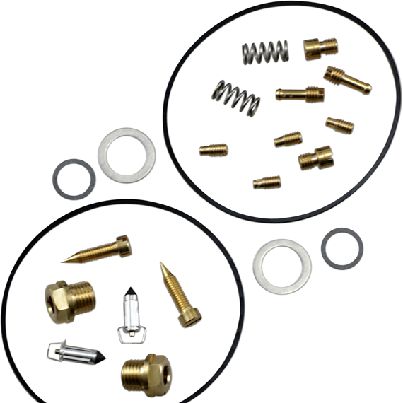 • Kit includes all necessary O-rings, gaskets, jets, needle, mixture screw, float bowl screws, float valve needle and seat (needle jet and other pressed-in jets are not included in kit)