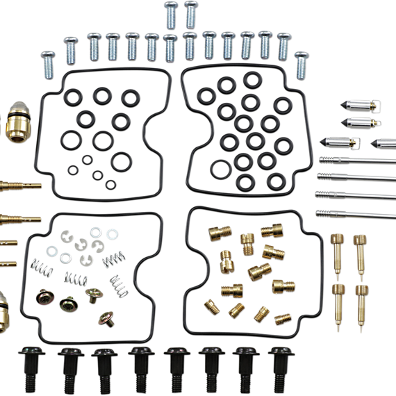 Caracteristicas: Kit includes all necessary O-rings, gaskets, jets, needle, mixture screw, float bowl screws, float valve needle and seat (needle jet and other pressed-in jets are not included in kit) NBR rubber material is used on all O-rings and rubber gaskets; NBR has excellent resistance to the ethanol used in today's fuels Applications that use paper float bowl gaskets are upgraded to High Performance Interference Gasket material Models with multiple carburetors include components to repair all carburetors OEM jet sizes and slide needles are included in the kit