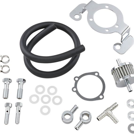 Caracteristicas: Kit allows the installation of aftermarket air cleaner assemblies on late model bikes equipped with OEM CV carb or Delphi EFI system Includes bracket, filter, hose and all mounting hardware necessary for installation except where noted