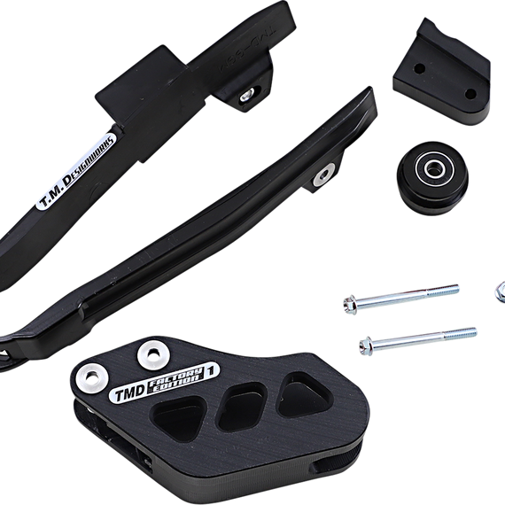 Caracteristicas: The kit includes front slider, lower frame pad & FE #2 rear guide with replaceable wear pad. Noise dampening pad system lowers chain slap noise. A special chain guidance backing plate keeps the chain constantly centered to improve suspension. The lower Powerlip frame pad last longer but more importantly lowers surface drag.