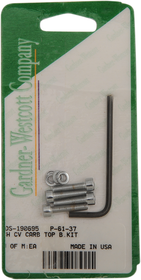 Caracteristicas: Kits feature polished stainless steel or polished chrome steel socket-head bolts Motor sets for Twin Cam include cam cover, primary cover, transmission side cover, oil hose cover, lifter base, rocker box, front inner primary, washer, motor and transmission mount bolts Motor set for M-Eight includes cam cover, primary cover, transmission covers, electric module cover, lifter base, rock boxes, top front motor mount and rear motor mount Side cover set include cam, primary, oil hose cover and transmission side cover Primary set include primary, inspection and derby cover Made in the U.S.A.