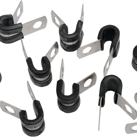 Caracteristicas: Clamps feature 1/4" mounting holes with rubber guards on the inside of the clamps Great for custom mounting wiring, hoses and cables Made in the U.S.A.