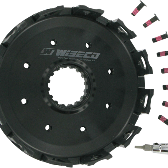 Caracteristicas: Forged from lightweight aerospace-grade aluminum alloy; CNC machining ensures each clutch basket is identical to the next Weight-saving relief cuts on outside of clutch reduce rotational mass, allowing engine to rev quicker Large oiling holes increase lubrication and reduce heat buildup PTFE coating makes for a near-frictionless surface Come with fasteners complete with pre-applied thread locker
