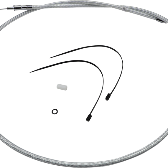 Caracteristicas: Sterling Chromite® II uses patented technology to look like chrome Braid color and weave match on all Magnum control cables and brake lines Coated with a non-yellowing, crystal clear FEP fluoropolymer outer jacket for exceptional protection against scuffing paint or chrome Low-effort, high-efficiency cable design meets or exceeds all OE specifications for fitment, construction, and endurance All fittings are polished and chrome plated Attractive adjuster with integrated water resistant seals does not require a boot Rubber seal in transmission fitting eliminates fluid leaks All cables are factory lubricated for smooth, consistent, long-lasting operation Assembled in the U.S.A. Late style cables are measured with the adjuster completely collapsed