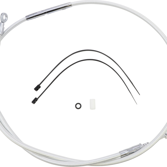 Caracteristicas: Sterling Chromite® II uses patented technology to look like chrome Braid color and weave match on all Magnum control cables and brake lines Coated with a non-yellowing, crystal clear FEP fluoropolymer outer jacket for exceptional protection against scuffing paint or chrome Low-effort, high-efficiency cable design meets or exceeds all OE specifications for fitment, construction, and endurance All fittings are polished and chrome plated Attractive adjuster with integrated water resistant seals does not require a boot Rubber seal in transmission fitting eliminates fluid leaks All cables are factory lubricated for smooth, consistent, long-lasting operation Assembled in the U.S.A. Late style cables are measured with the adjuster completely collapsed