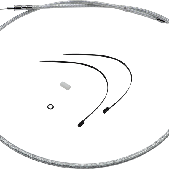 Caracteristicas: Sterling Chromite® II uses patented technology to look like chrome Braid color and weave match on all Magnum control cables and brake lines Coated with a non-yellowing, crystal clear FEP fluoropolymer outer jacket for exceptional protection against scuffing paint or chrome Low-effort, high-efficiency cable design meets or exceeds all OE specifications for fitment, construction, and endurance All fittings are polished and chrome plated Attractive adjuster with integrated water resistant seals does not require a boot Rubber seal in transmission fitting eliminates fluid leaks All cables are factory lubricated for smooth, consistent, long-lasting operation Assembled in the U.S.A. Late style cables are measured with the adjuster completely collapsed