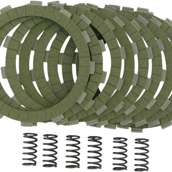 Caracteristicas: Aramid paper-lined plate set, complete with heavy-duty clutch springs For use in heavy sport bikes and production-based race bikes SRC kits have longer plate life and higher heat resistance SRC kits have a more aggressive/faster clutch takeup than the CK standard series clutch kits Not for use with full synthetic oil