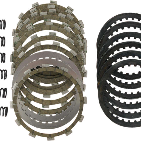 Caracteristicas: Get all the performance without all the fade or slip Get all the performance without all the fade or slip Friction plates are ready to fit - no need to pre-soak in oil Friction plates are ready to fit - no need to pre-soak in oil Designed to ensure ultra-smooth power delivery Designed to ensure ultra-smooth power delivery More durable than OEM clutch plates More durable than OEM clutch plates High-heat friction material for fade-free performance High-heat friction material for fade-free performance Clutch springs are shot-peened for maximum life, heat-treated and precision-wound using only the finest chrome silicon Clutch springs are shot-peened for maximum life, heat-treated and precision-wound using only the finest chrome silicon Springs are individually designed for each application to ensure easy operation and great feel at the lever Springs are individually designed for each application to ensure easy operation and great feel at the lever Kits available with or without steel friction plates Steel friction plates are precision-made using exacting tolerances Steel friction plates are precision-made using exacting tolerances Plates are heat-treated for maximum life Plates are heat-treated for maximum life Will not muddy or contaminate oil Will not muddy or contaminate oil Both styles of clutch kit include friction plates and springs (unless noted in part specific text)
