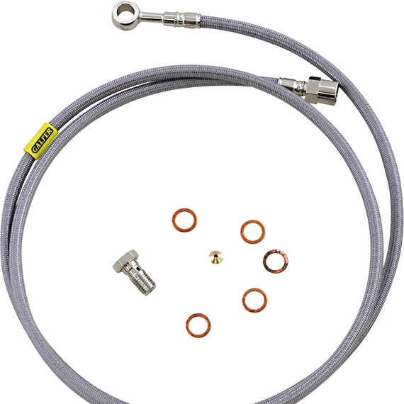 Caracteristicas: Stainless Steel lines are typically the first upgrade you should make Stock rubber lines will break down and expand, causing a spongy feel or worse. Steel lines eliminate expansion which results in consistent feel and performance Made with only DuPont virgin grade PTFE (Polytetrafluoroethylene) inner core 64 strand braid Includes all mounting components, extra washers, and line end labeling, and bike specific installations R&D and manufacturing done in the US