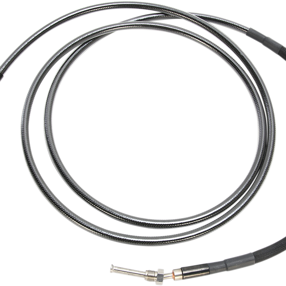 Caracteristicas: Constructed with PTFE inner tubing, DuPont Kevlar aramid fiber, premium Signature Magnum braids and an outer PVC jacket Three unique stainless steel transmission fittings eliminate the use of adapters Braid color and weave match all other Magnum control cables and brake lines Crystal clear outer jacket offers exceptional protection against scuffing the bike's paint or chrome and will never discolor Inner PTFE tubing braided with aramid fiber provides the ultimate in high performance and is compatible with all hydraulic fluids Transmission fittings for all hydraulic clutch lines have a natural stainless steel finish Compliant with all DOT FMVSS-106 Specifications Assembled in the U.S.A. 99-12 OE Harley, CVO, P&A and 02-17 V-Rod hydraulic clutch line fittings require taking a measurement to determine ordering length
