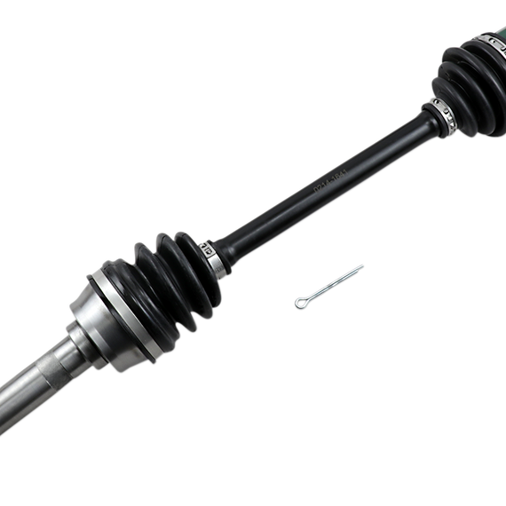Caracteristicas: Precision machined and heat treated solid chromoly steel center shaft, cages, races and ball bearings up to 35% stronger Highest quality, most reliable, and toughest constant velocity axles on the market Manufactured in a state-of-the-art ISO9001 and TS16949 certified factory Induction heat treated joints packed with high performance moly grease Designed to withstand the most rigorous conditions and terrain High-strength spring steel retaining clips (where required) Torture tested to failure to ensure maximum durability Exceed OEM quality in fit, form and function Secure stainless steel dust boot clamps Fully assembled for easy installation Precision rolled splines and threads