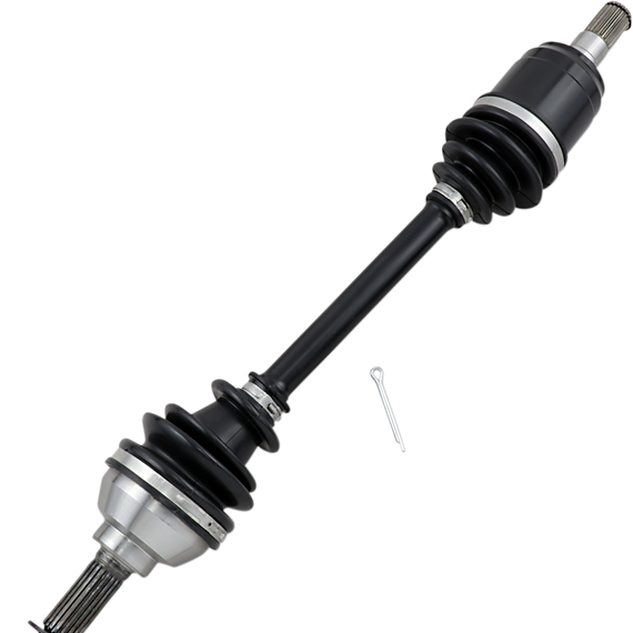 Caracteristicas: Precision machined and heat treated solid chromoly steel center shaft, cages, races and ball bearings up to 35% stronger Highest quality, most reliable, and toughest constant velocity axles on the market Manufactured in a state-of-the-art ISO9001 and TS16949 certified factory Induction heat treated joints packed with high performance moly grease Designed to withstand the most rigorous conditions and terrain High-strength spring steel retaining clips (where required) Torture tested to failure to ensure maximum durability Exceed OEM quality in fit, form and function Secure stainless steel dust boot clamps Fully assembled for easy installation Precision rolled splines and threads
