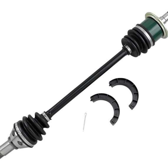 Caracteristicas: Precision machined and heat treated solid chromoly steel center shaft, cages, races and ball bearings up to 35% stronger Highest quality, most reliable, and toughest constant velocity axles on the market Manufactured in a state-of-the-art ISO9001 and TS16949 certified factory Induction heat treated joints packed with high performance moly grease Designed to withstand the most rigorous conditions and terrain High-strength spring steel retaining clips (where required) Torture tested to failure to ensure maximum durability Exceed OEM quality in fit, form and function Secure stainless steel dust boot clamps Fully assembled for easy installation Precision rolled splines and threads