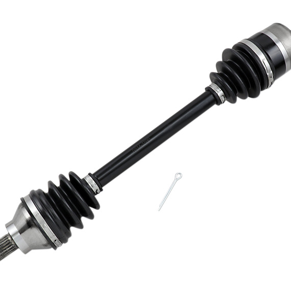 Caracteristicas: Precision machined and heat treated solid chromoly steel center shaft, cages, races and ball bearings up to 35% stronger Highest quality, most reliable, and toughest constant velocity axles on the market Manufactured in a state-of-the-art ISO9001 and TS16949 certified factory Induction heat treated joints packed with high performance moly grease Designed to withstand the most rigorous conditions and terrain High-strength spring steel retaining clips (where required) Torture tested to failure to ensure maximum durability Exceed OEM quality in fit, form and function Secure stainless steel dust boot clamps Fully assembled for easy installation Precision rolled splines and threads