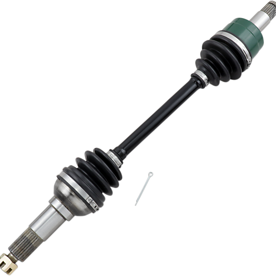 Caracteristicas: Precision machined and heat treated solid chromoly steel center shaft, cages, races and ball bearings up to 35% stronger Highest quality, most reliable, and toughest constant velocity axles on the market Manufactured in a state-of-the-art ISO9001 and TS16949 certified factory Induction heat treated joints packed with high performance moly grease Designed to withstand the most rigorous conditions and terrain High-strength spring steel retaining clips (where required) Torture tested to failure to ensure maximum durability Exceed OEM quality in fit, form and function Secure stainless steel dust boot clamps Fully assembled for easy installation Precision rolled splines and threads